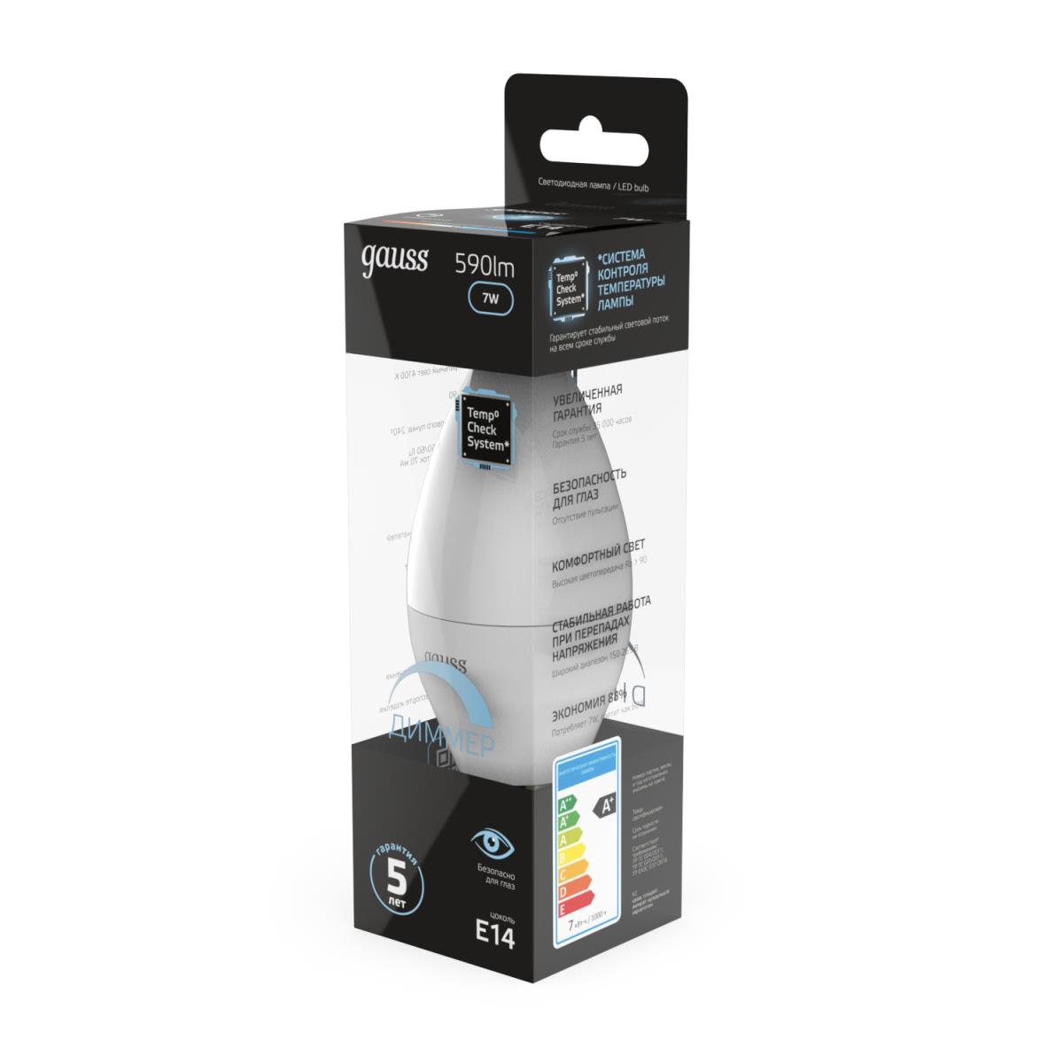 Лампа светодиодная Gauss E14 6.5W 4100К матовая 103101207