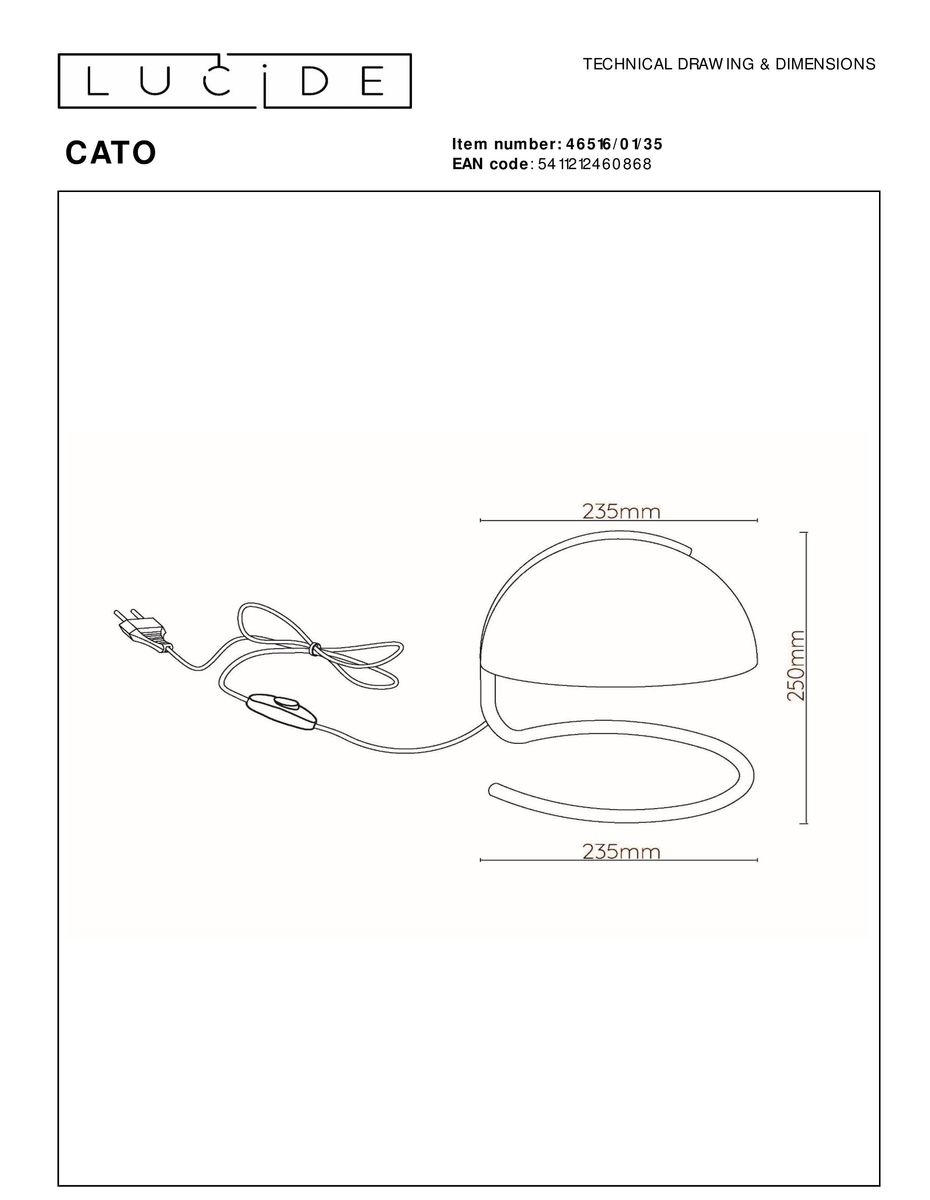 Настольная лампа Lucide Cato 46516/01/35