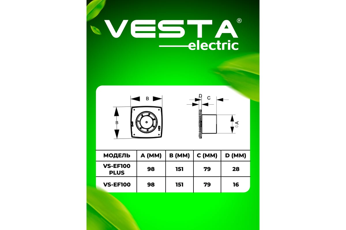 Вентилятор вытяжной Vesta-Electric EF-100 FLEF000000100PC