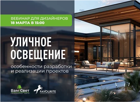 Не пропустите наш бесплатный вебинар 18 марта в 15:00, на котором спикер от бренда Favourite расскажет о главных правилах подбора освещения для загородных домов и участков.