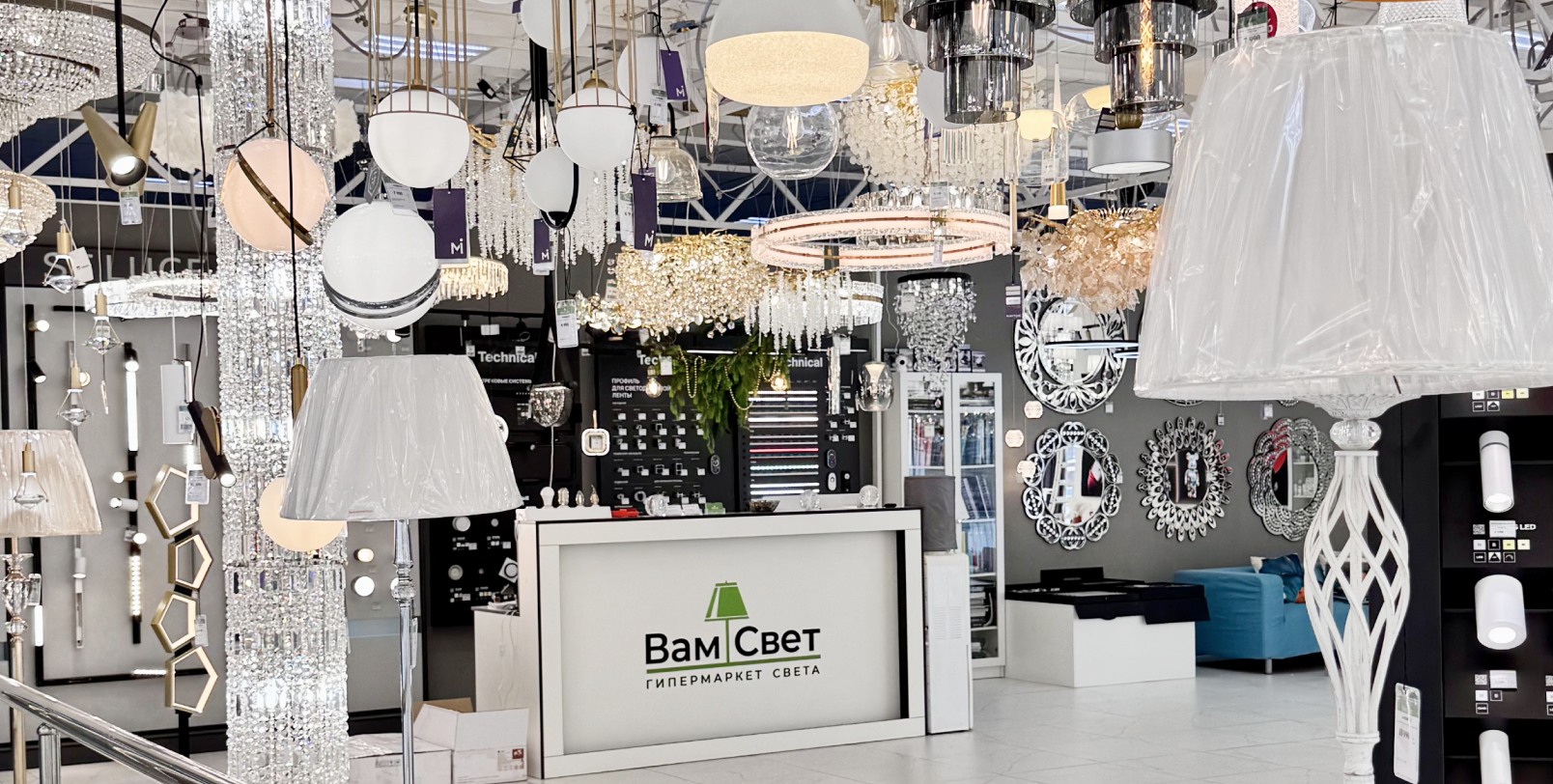 Магазин «ВамСвет» расположен в ТЦ «Интерьерный центр № 1», который находится на пересечении улиц Российская и им.Петра Метальникова.