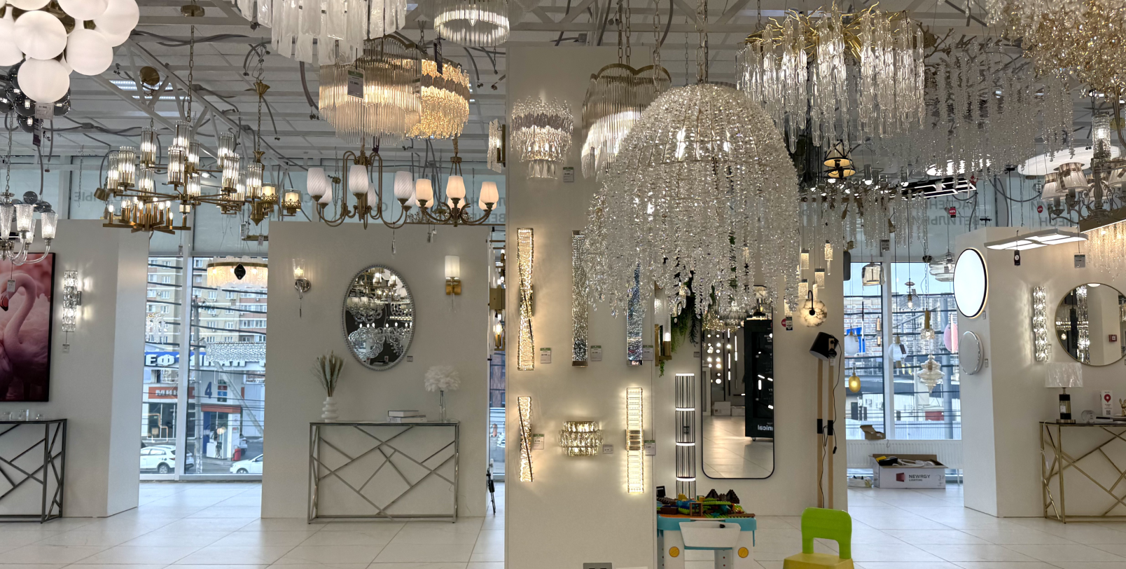 В салоне представлены все виды освещения – от декоративного до технического. В магазине вы можете не только выбрать необходимые светильники, но и получить профессиональную консультацию у опытных продавцов-консультантов.
