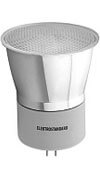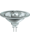 Низковольтная галогенная лампа накаливания с рефлектором и передним стеклом. Потребляет меньше энергии по сравнению с другими галогенными лампами с одинаковым светом, благодаря рефлексивному тепловому слою, который отражает тепло к раскаленной нити накала. Напряжение: 12В. Диаметр лампы: ф=50мм.